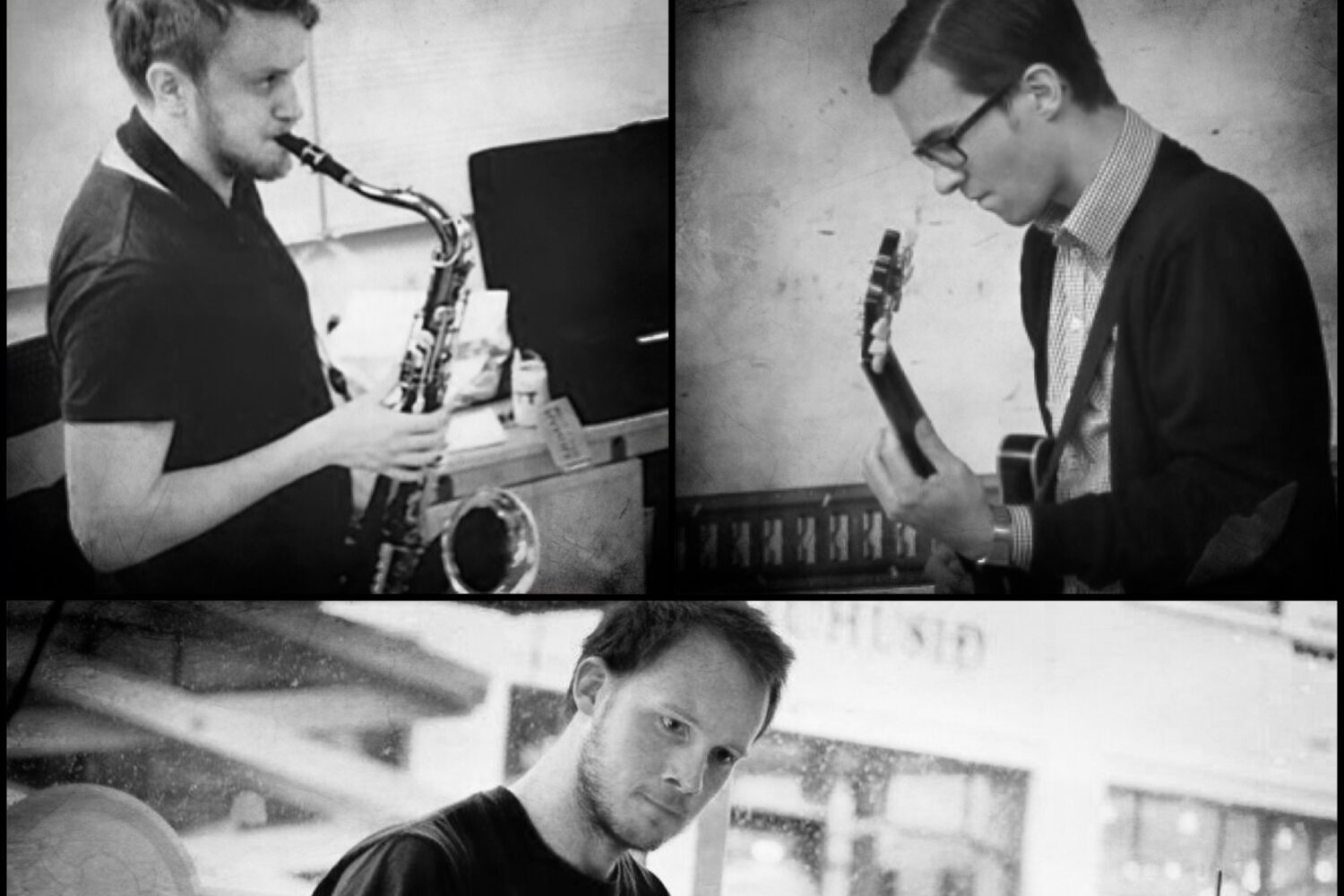 Three up and coming musicians who recently completed their studies at the illustrious chord scale establishment FIH. Saxophonist Helgi Rúnar Heiðarsson, guitarist Daniel Helgason and drummer Oskar Kjartansson.